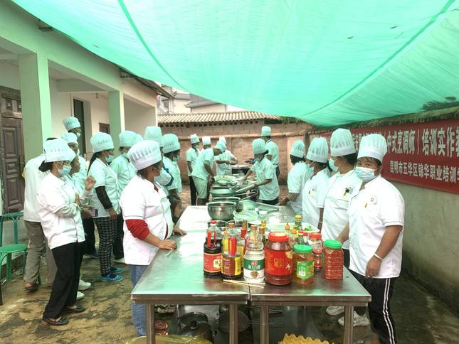 此次培训历时15天,以理论教学和实际操作相结合的方式开展。培训聘请了昆明市五华区锦华职业培训学校余首明老师和潘剑飞老师为学员讲解中式烹调师、电工相关知识,共有100余人参加了培训。