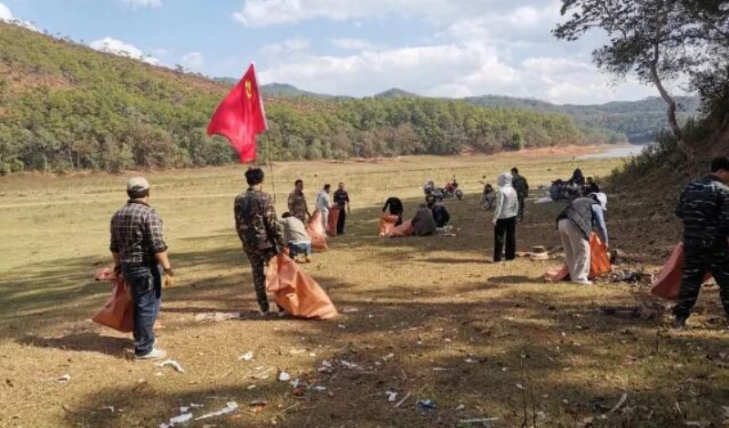 太平水库作为勐班乡集镇应急水源,为更好的保障群众饮水安全与全面推行河(湖)长制工作。2月7日,勐班乡农业综合服务中心党支部以“学党史办实事+”为载体,组织农业中心党支部党员、中心干部职工与太平水库管理所干部职工等18人,沿太平水库水岸线开展“清河行动”。