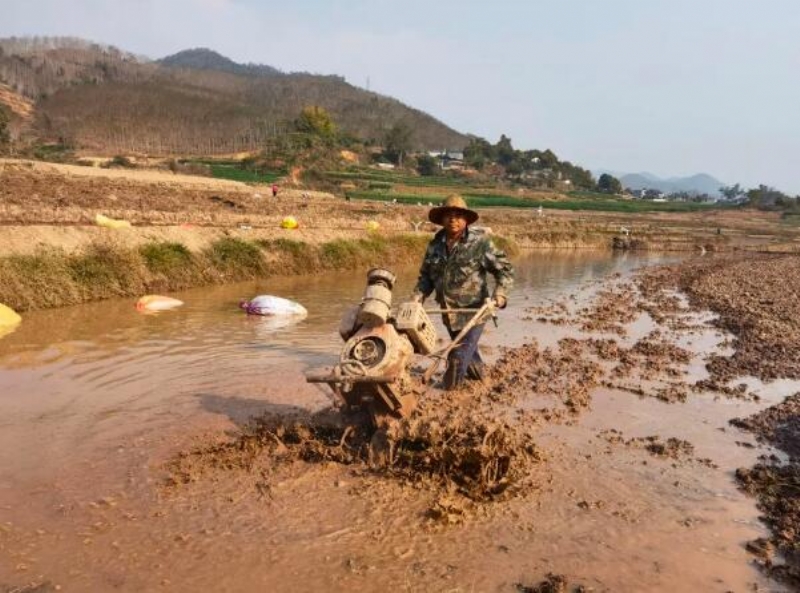 阳春三月,随着气温的回升,进入水稻的春灌、播种期。在益智乡石寨村的田间地头,村民们正忙着翻耕、平整稻田、栽秧,形成一幅如火如荼的春耕生产画卷。