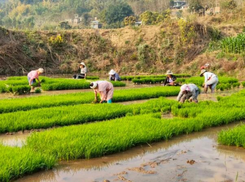据石寨村党总支部书记、村民委员会主任陶文辉介绍,石寨村有水田约600亩,常住居民多为傣族,由于地理、气候条件等因素,从3月开始就进行春耕备耕工作,石寨村大部分水田种植水稻可以一年两熟,充分利用了自然资源和劳力资源,提高了粮食产量。这也是保障粮食安全的方式之一。为服务好春耕生产工作,益智乡农业综合服务中心根据季节深入田间地头送信息、讲技术,及时解决群众遇到的困难问题,多措并举助力春耕工作扎实有序开展。