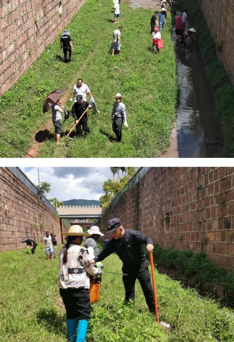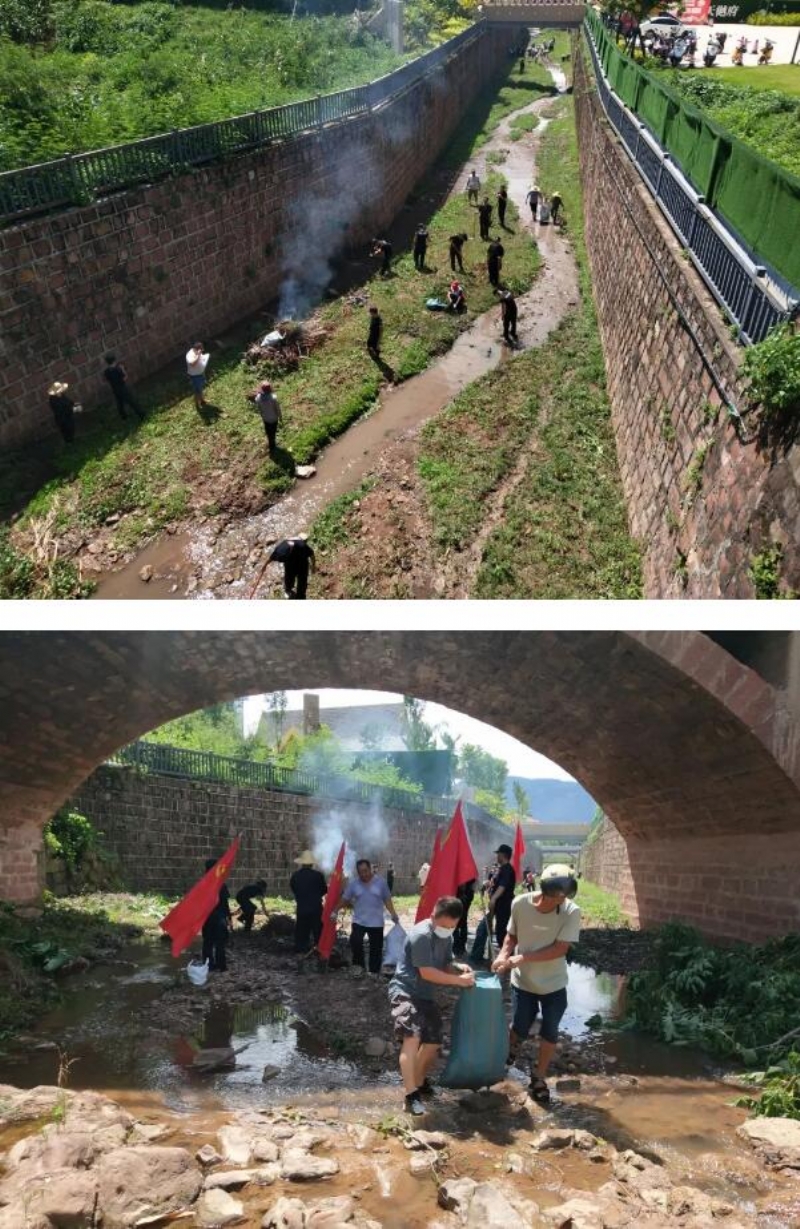 为清理整治煤矿小河流域河段杂草丛生、垃圾成堆、河道不畅等问题,近日,威远镇凤岗社区积极组织开展“双报到双服务双报告”志愿服务活动,县公安局、凤岗社区、芒冒村和原道天樾府50余名党员、群众积极投身到煤矿小河的专项清理整治行动。