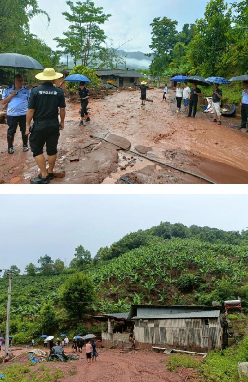 8月31日15时左右,威远镇新民村芒行村民小组发生一起因短时强降雨造成四间临时生产用房被冲毁事件,村民谭安然户4间临时生产用房受损(其中2间为空心砖房,总面积160平方米;1间为彩钢瓦墙体100平方米;1间为木房110平方米)。造成2辆长安牌小货车车辆受损,一辆摩托车被掩埋,无人员伤亡。