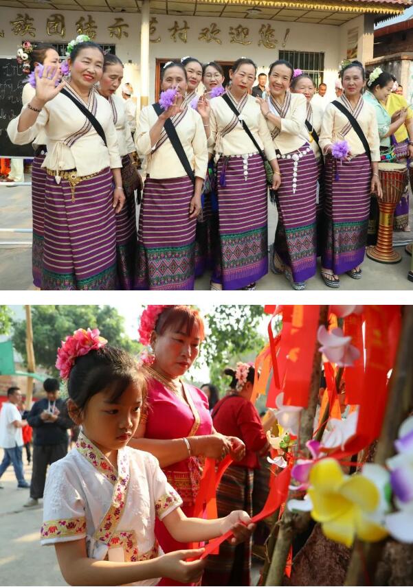 千景之谷·花朝水悦 本次活动以“传承好家风,体验傣寨泼水”为主题,是2023年景谷采花泼水节系列活动之一。活动中,主要组织村民小组的妇女们开展了为老人按摩、洗脚、剪指甲、傣族老人指导年轻的傣族妇女们包包头等活动;在傣族长老的倡导下,村民们齐声诵读《弟子规》及有关孝老爱亲内容的傣族经文。参加活动的游客和村民们将祈福带悬挂到吉祥树上祝愿来年平安健康。 村民陶慕玲说,孝老爱亲一直是新营盘村民小组家家户户的传统美德,通过参加了这次孝老爱亲的传承活动后, 又给村民 们加深了传承孝老爱亲优良传统重要性的认同,对于这样的优良传统,将会世世代代传承下去。