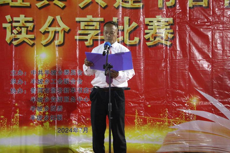 为厚植党员干部爱党爱国情怀,坚定理想信念,汲取奋进力量,在全社会形成“爱读书,读好书,善读书”的文明风尚,推动半坡全民阅读热潮,7月31日,半坡乡开展“品读红色经典 共建书香社会”阅读分享比赛。