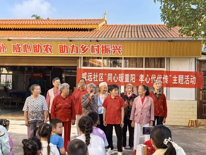 岁岁重阳,今又重阳。为弘扬中华民族“尊老、爱老、助老”的传统美德,10月26日,威远镇威远社区妇联儿童友好家园精心策划的“同心暖重阳·孝心代代传”重阳节主题活动温情上演。活动融合知识普及、文艺表演、手工互动与美食分享,吸引了众多社区老年朋友和亲子家庭积极参与。