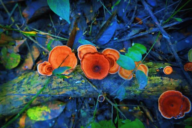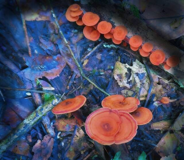 野生灵芝的林下栖居 威远江省级自然保护区的雾,把腐叶揉成软毯, 巡护镜的光,轻轻碰醒, 朽木怀里蜷着的红釉玉盘; 是灵芝—— 菌盖洇开橙色的暖,环纹缠成细语, 两两相倚的,是雨林揉软玉, 簇成小群的,是藏在林间的呼吸; 它们是朽木的诗, 分解枯落的旧,喂饱林地的新, 层叠的菌盖里,裹着细碎的生机, 而威远江省级自然保护区的湿润与静, 是托着灵芝的掌心, 它的每一次舒展, 都是秘境生态,轻轻说的“安好”。