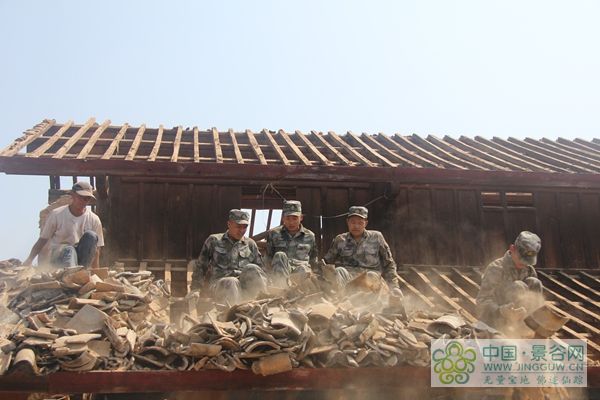 图为官兵为灾区群众排除隐患(张雷)