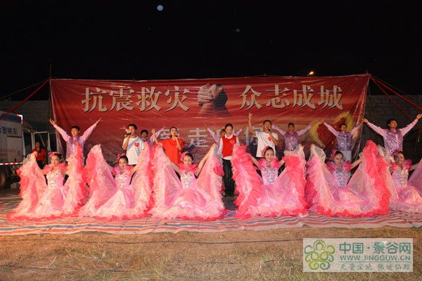 10月27日晚,一场以“爱走向你”为主题的文艺演出在永平镇举行,来自灾区数百名群众观看了整场演出。 晚会在歌舞《与爱同在》中拉开序幕。晚会有歌舞、诗歌朗诵、快板、情景剧、大合唱等节目。快板《三字经》由新闻宣传组创作,以通俗易懂朗朗上口的轻快节奏总结了这次景谷“10.07”地震的特点及各级各部门全力以赴抗震救灾的全过程;情景剧《党在家在》再现了地震当晚的情景及全县党员领导干部在县委政府的领导下积极参与到抗震救灾中的情景,诠释了广大党员干部舍小家顾大家全力抗震救灾的感人事迹,得到了灾区群众的好评。整台晚会历时一个多小时,唱响了灾区群众在地震后,在党和政府的坚强领导下,在社会各界关心支持下,自力更生,众志成城,抗震救灾,恢复重建的信心和决心。