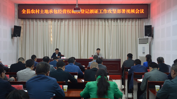 2月27日,全县农村土地承包经营权确权登记颁证工作攻坚部署视频会议召开,深入贯彻省、市确权工作攻坚部署会议精神,安排部署全县农村土地确权工作。自治县领导苏有良出席会议并讲话。苏有良指出:自2015年启动试点县工作以后,我县农村土地承包经营权确权登记颁证工作顺利推进,目前全县已完成122个村民委员会、1706个村民小组、6.57万户农户的耕地权属调查工作,调查地块数50.29万块,调查实测面积145.06万亩。根据省确权办最新排名,我县确权工作进度排在全市第一,全省第五,确权工作取得了可喜成绩。但我们要清醒认识到各乡(镇)工作进度距县委、政府的要求仍有不少差距。我们要敢于攻坚克难、敢于干事、敢于作为、敢于担当,我们要以奋发有为、锐意进取的精神状态,化责任为力量、变压力为动力,全力冲刺确权登记颁证工作,按时全面完成全县农村土地承包经营权确权登记颁证工作任务,为决战决胜脱贫攻坚、全面建成小康、实现乡村振兴做出应有的贡献。自治县人民政府副县长康铭光主持会议并传达学习省、市农村土地承包经营权确权登记颁证工作攻坚部署会议和宣读(景办发〔2018〕22号)文件精神。各乡(镇)人民政府主要领导,自治县农村土地承包经营权确权登记颁证工作领导小组成员单位主要负责人,云南省测绘地理信息科技发展公司和云南地矿测绘院负责人在主会场参加会议。各乡(镇)党委主要领导,分管确权工作的副书记和副乡(镇)长,各乡(镇)农村土地承包经营权确权登记颁证工作领导小组成员单位主要负责人及各村书记、主任在各乡镇分会场参加会议。(胡开华 图/文)