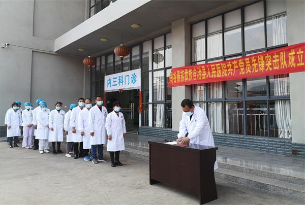 此次成立“党员突击队”旨在充分发挥基层党组织战斗堡垒作用和党员先锋模范作用,通过党员先锋高度的政治站位和过硬的责任担当,带领全院职工勇担当、敢作为,以最强力量、最严措施切实防止疫情扩散蔓延,守护人民群众生命安全和身体健康,让党旗在防控疫情斗争第一线高高飘扬。 医院党委要求党员干部要坚守岗位、靠前指挥、身体力行,引导和激励广大党员干部挺身而出、英勇战斗,在防控疫情斗争中发挥出应有的、开创性的贡献。号召医院全体“白衣战士”,不忘初心,牢记使命,发扬“敬佑生命、救死扶伤、甘于奉献、大爱无疆”的新时代卫健工作之精神,牢记习近平总书记“要把人民群众生命安全和身体健康放在第一位”的重要指示,群策群力打好这场攻坚战。