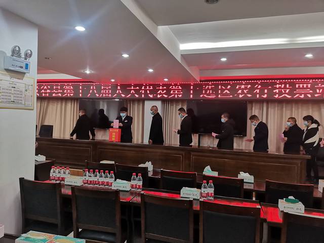 威远镇芒冒村投票现场 摄于2021年12月20日 在县城第十选区金融系统投票站,庄严肃穆,农村信用联社、农行、建行等几家银行员工全部统一着装,在工作人员的组织引导下,排着整齐有序的队伍,依次投下选票。投票完成后,工作人员当场封存票箱并在封条上签字按手印。