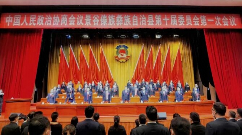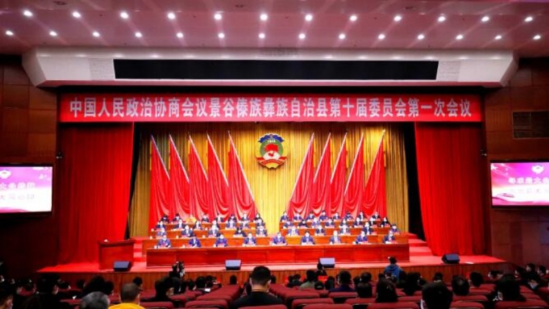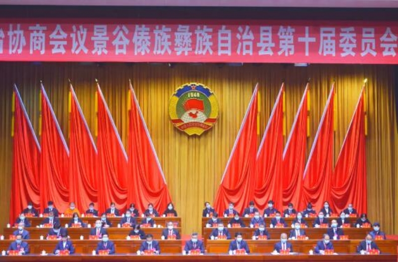 1月16号上午,中国人民政治协商会议景谷傣族彝族自治县第十届委员会第一次会议圆满完成了各项议程,在县文体中心报告厅胜利闭幕。本次会议应到委员182名,实到175名,符合《政协章程》规定。 县政协主席何国华、副主席董剑锋、陈兆安、王梅、付益在主席台前排就座。