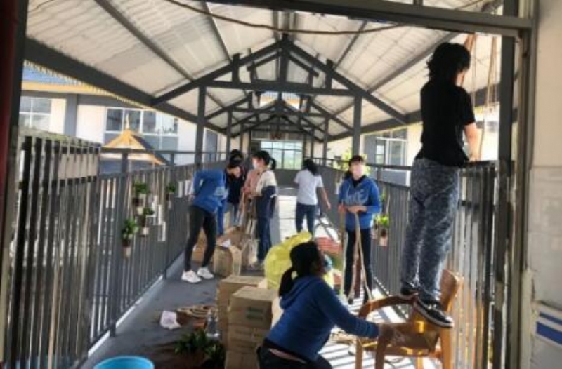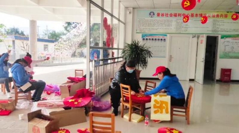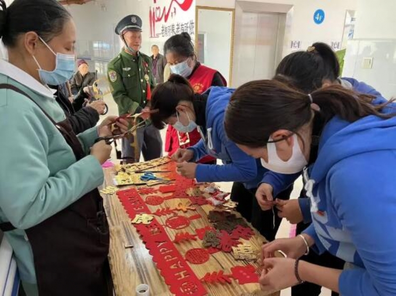 为了迎接新春佳节的到来,营造喜庆祥和的节日氛围,让老人们过上一个欢乐喜庆的中国年,志愿者们发挥专业特长,亲手制作了精美的装饰品。一个个福字,一串串灯笼,一排排拉花,一株株绿萝,将节日装点得红火富丽,喜气洋洋,满院都洋溢着浓浓的年味儿,吉庆又温馨。