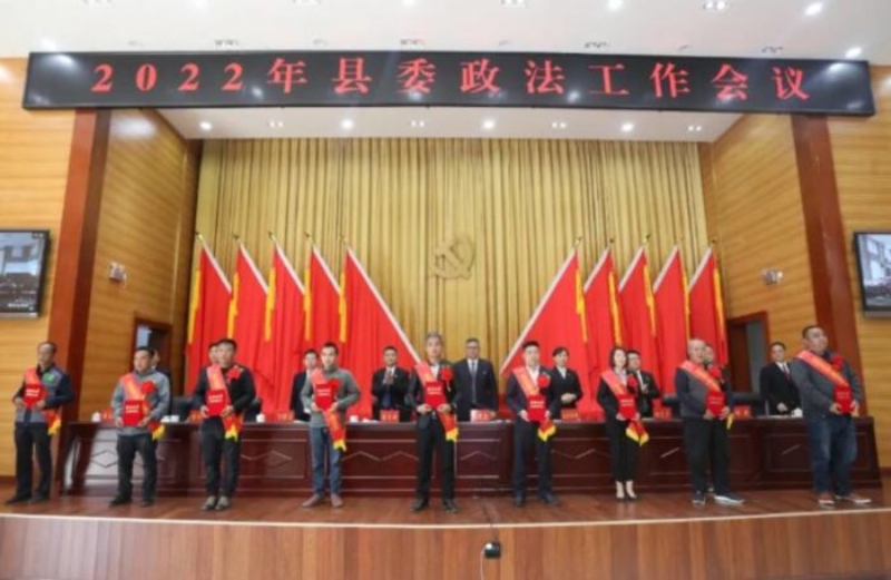 县委常委、政法委书记游文斌主持会议,并对下一步的政法工作作了安排。县政府副县长、公安局长杨康传达学习了中央和省委、市委政法工作会议主要精神;与会领导向2021年度见义勇为先进群体进行了颁奖。