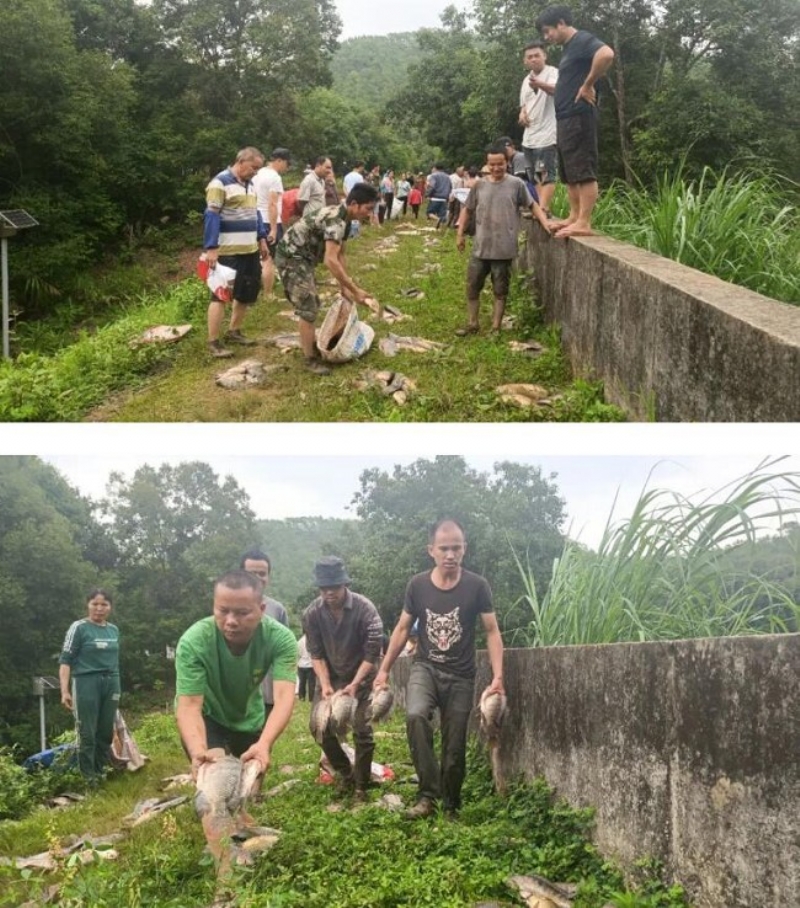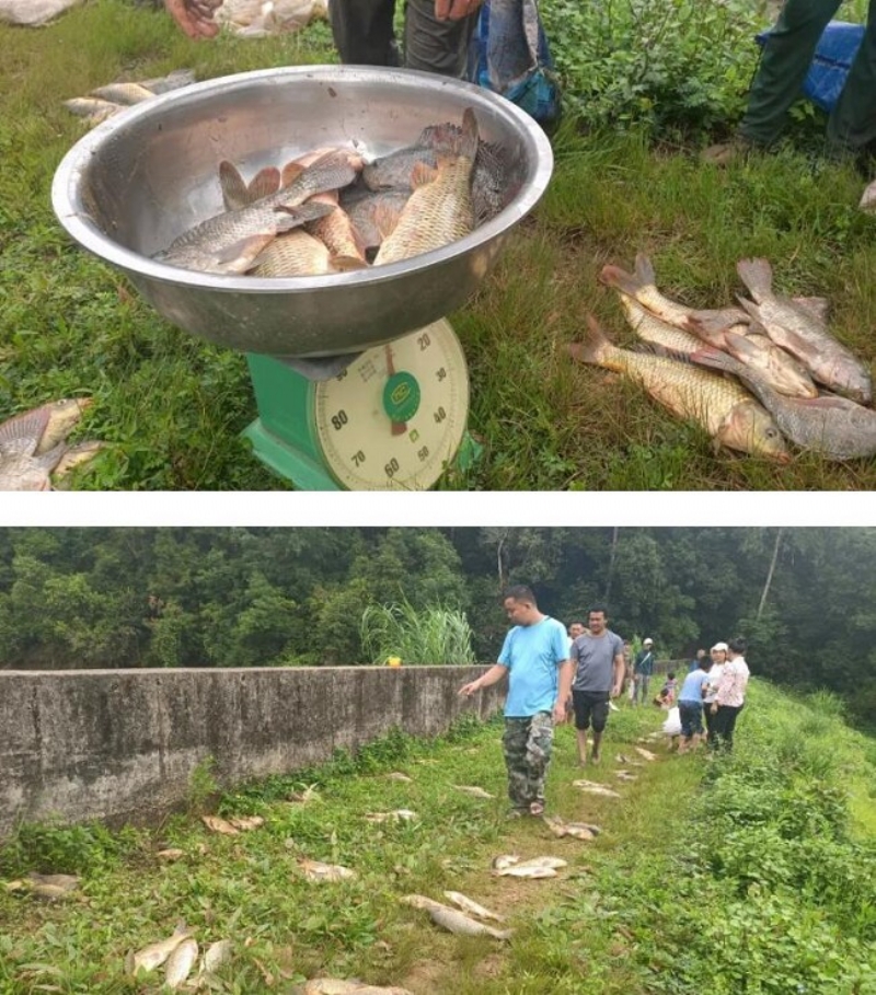 又是一年丰收时,6月5日,景谷县永平镇湾田村民小组迎来了一年一度的水库开闸放水分鱼时刻,44户村民同分近一吨大鱼,共享大丰收。