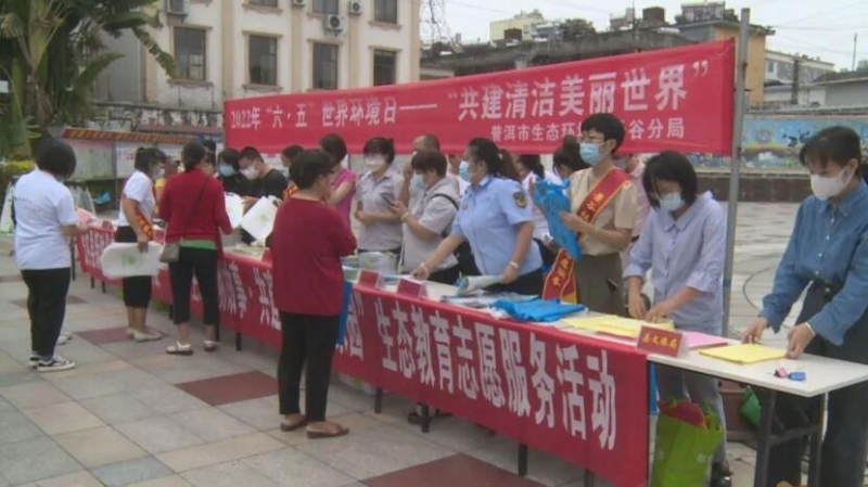 为深入宣传贯彻习近平生态文明思想,促进市民对六五环境日的了解,自觉践行绿色生产生活方式。6月2日上午,普洱市生态环境局景谷分局联合全县21个部门单位在景谷孔雀广场组织开展2022年“六五环境日”宣传活动。