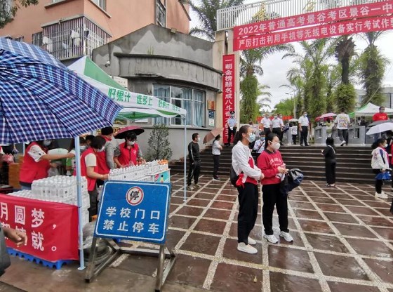 “今天我们组织党员志愿者、青年志愿者,携手爱心企业,为广大学子提供饮料、水,希望考生考出好的成绩。”团县委书记杨联顺说。