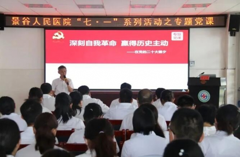 7月1日,景谷县人民医院开展了庆“七一”暨主题党课活动。县人民医院党政领导班子成员,全院中层干部,各党支部书记、委员,院工会、院团委、女工委负责人以及预备党员参加活动。