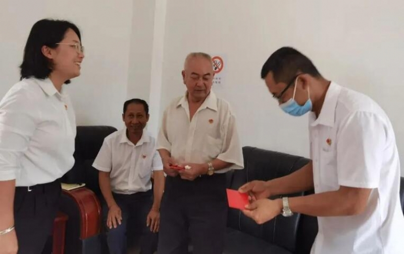 党的光辉照基层,一枝一叶总关情7月1日,15:00供销社支部的困难老党员、卫生院支部的抗疫一线党员从镇党委书记李雯颖的手中接过了慰问红包。一封小小的红包,满载着县委、镇党委对党员的关怀,对基层群众的关爱。“七一”期间,凤山镇党委组织慰问了生活困难党员、老党员、疫情防控一线党员等共计28人。他们曾是艰苦奋斗的一代,也是勤劳创业的一代,是长期坚守在抗击疫情一线的先进个人,这些默默无闻的党员们,用自己的行动回报着党的恩情。