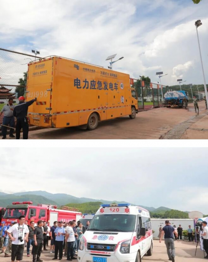“地震”发生后,县抗震救灾指挥部召开紧急会议,立即启动地震应急Ⅱ级响应,第一时间作出抗震救灾部署。同时,迅速集结增援力量,组建抢险救援、医疗救治和卫生防疫、群众生活保障等9个小组投入施救。在南景村演练现场,9个救援小组迅速集结,火速行动,全力搜救被困人员,对危重伤员进行安全转移,对垮塌区域进行挖掘清理。整个演练过程,各参演部门职责明确,分工合理,行动迅速,完成了人员搜救、医疗救护、供电抢险等10多项科目的演练,取得良好效果。