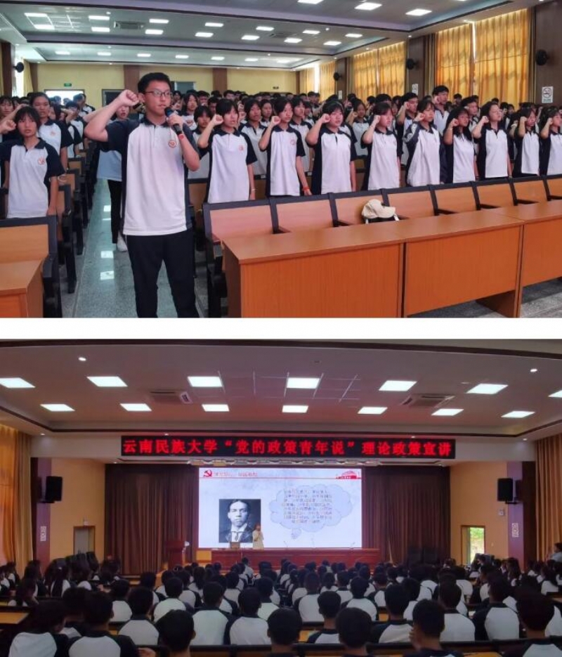 宣讲活动上,云南民大大学生理论宣讲团成员讲解了《民法典》中的高空坠物、居住权;引用梁启超先生的《少年中国说》来宣讲“‘党的政策青年说’,少年强则国强,少年自由则国自由,少年进步则国进步”。并带领同学们学习“女包公”任长霞同志的先进事迹,号召同学们努力学习,工作后全心全意为人民服务。