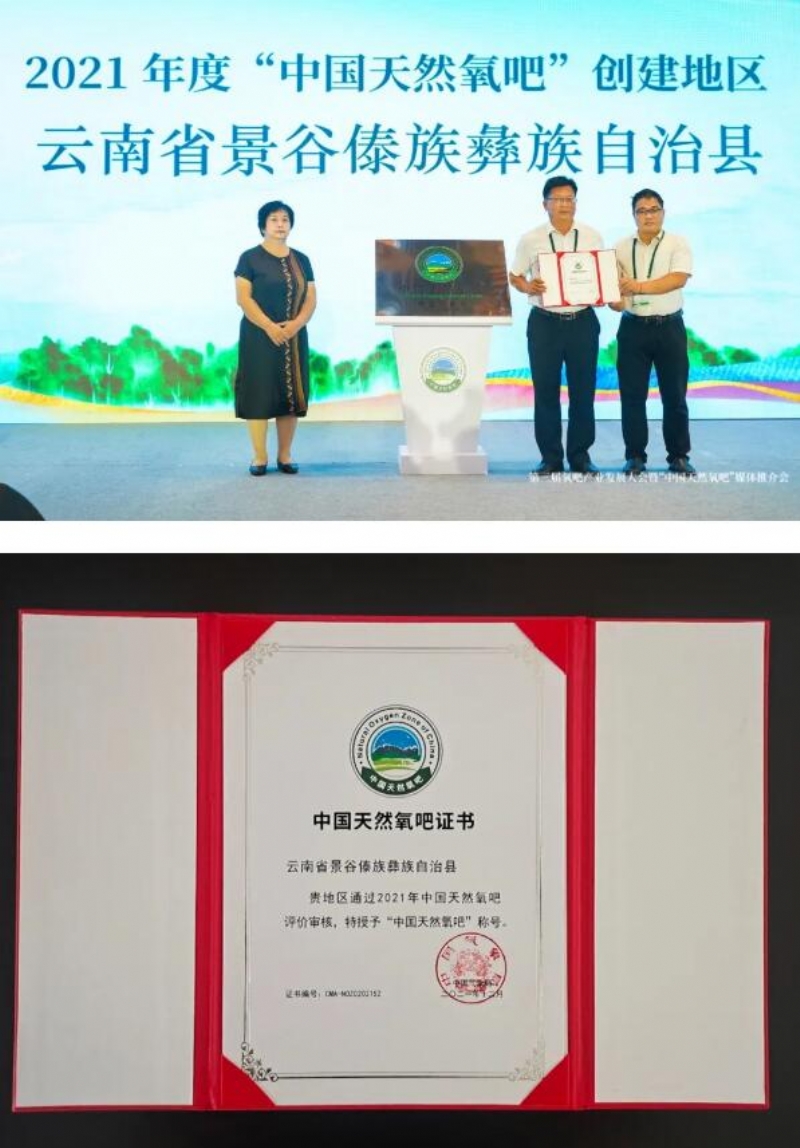 在7月30日-31日召开的第三届氧吧产业发展大会暨“中国天然氧吧”媒体推介会上宣读的2021年度中国天然氧吧创建地区名单,景谷傣族彝族自治县名列其中,荣获“中国天然氧吧”称号。景谷傣族彝族自治县人民政府副县长饶兴宏带领气象、茶特中心等部门负责人到会领取荣誉证书。
