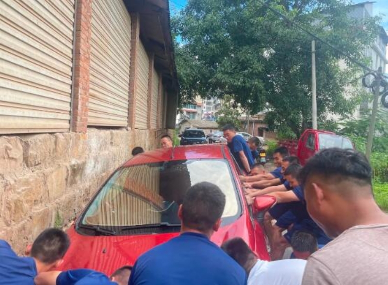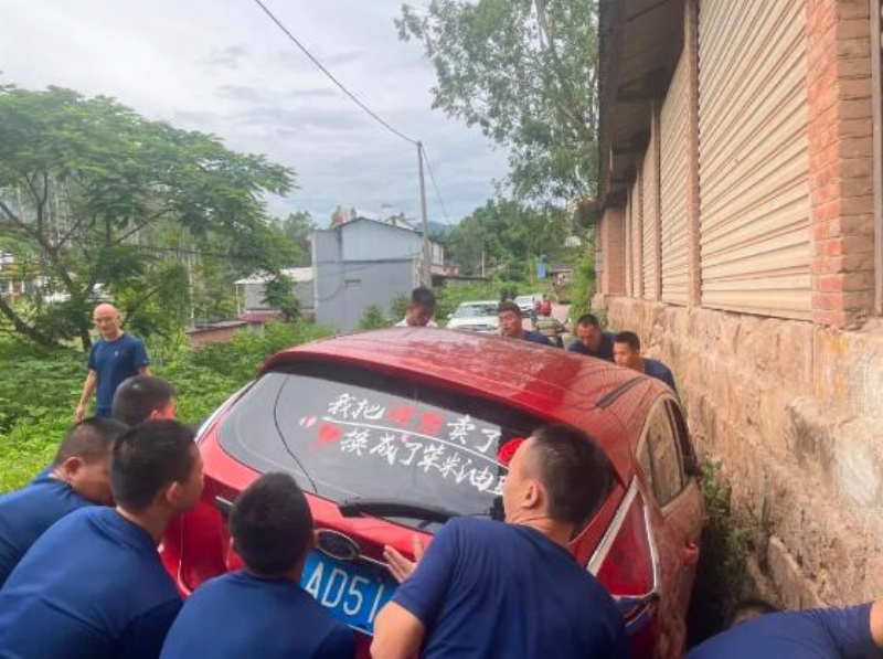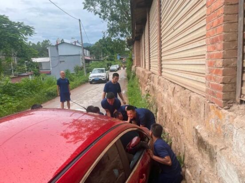8月2日下午17时25分,普洱森林消防支队景谷中队到游泳馆组织游泳训练,沿着威远镇新民公路返回中队时,忽然看到前面便道上有一辆小轿车侧翻斜在路沟里。他们立即上前救助,“人有没有受伤啊?”“人没啥事!”