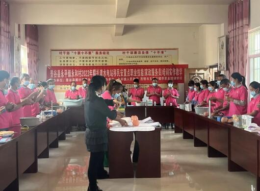永平镇永和村开展的是家政服务技能培训,培训老师将理论知识和实际操作相结合,给大家讲解婴幼儿护理、老人护理、家庭保洁等方面的技能知识。