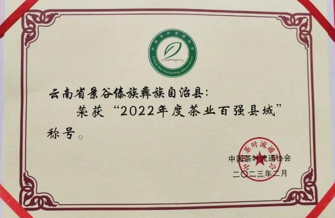 ·茶产业· 扎实推进景谷大白茶农产品地理标志登记和产品保护申报、数字白茶产业链追溯平台建设、古生物化石展陈馆建设等工作,并通过争创和打造“全国重点产茶县”、“全国十大生态产茶县”、“中国白茶产业发展示范县”、“中国茶业百强县”、“茶业最具投资价值县域”、“景谷大白茶”公共区域品牌等荣誉和品牌,优化茶种培育、提升茶叶种植技能,提高茶叶品质及产量。全县茶叶种植面积23.63万亩,其中古茶园面积3.63万亩,景谷大白茶20万亩。当前有机茶园认证面积3.87万亩,绿色食品茶园面积0.68万亩。2022年,茶叶产量1.4万吨、总产值49.10亿元。
