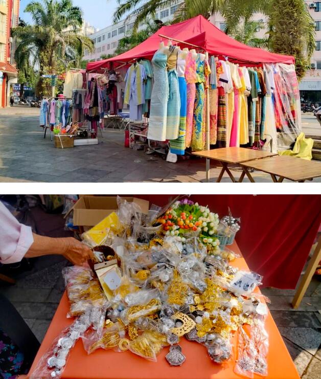 “在采花泼水节来临之际,为大家准备了好多新款的的傣族服饰、头花,还有比较有民族特色的包包,每天来店里的游客被我们打扮的美美的。”傣装店主刘馨。景谷“2023年采花泼水节”氛围感已拉满,只等你来!