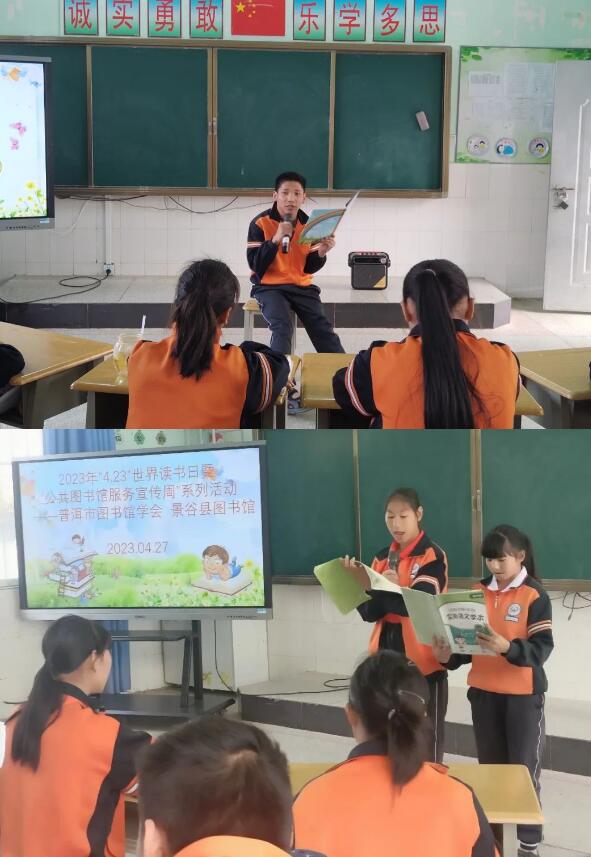在“我们的中国梦-文化进万家”阅读分享活动中,景谷图书馆和普洱市图书馆的老师为同学们分享了《格林童话故事》《看古人的读书风格秀》,图书馆老师结合故事情节在现场与同学们发起了良好互动鼓励他们开动脑筋、积极发言、学会交流和表达自己。同学们也分享了《画蛇添足》《一次比一次有进步》《假如我有超能力》故事,赢得了大家热烈掌声。