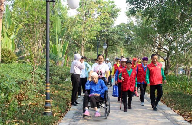 清风拂面,鸟语花香。老人们兴致高昂,一路走走看看,感受着“千景之谷”春的美好。随行的工作人员十分贴心地照顾着老人行走、上下阶梯,为老人拍照留念,满足老人们一应需求。同时,还在凉亭内摆上可口的水果和糕点,与老人们围坐畅谈,尽情享受着这美好的时光。“我都78岁了,才第一次来这里,还有机会出来活动活动,看看风景,太开心了!”“原来我们景谷的公园这么漂亮啊!”“今天真的很开心,谢谢你们的关心和照顾!”去年入住的社会老人陈奶奶一直跟搀扶她的护工说。