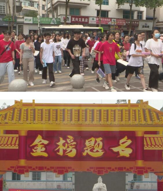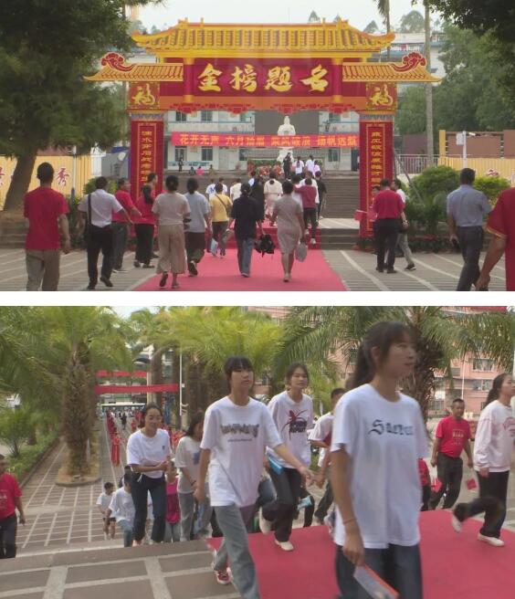 老师们也组成了一支送考队,他们举起了醒目的旗帜和祝福牌,用整齐的口号、自信的微笑、鼓励的眼神,为考生增添几分迎战高考的信心。 “非常荣幸能够参加本届的送考。今天我们团队也穿了一身正红色的旗袍,祝愿高考的每一个孩子旗开得胜、逢考必过、前程似锦。加油!”送考老师周丽红说。 寒窗苦读,今朝场上试;金榜题名,展翅正当时。高考开考日,愿所有学子昂首向前冲,一举实现心中梦。