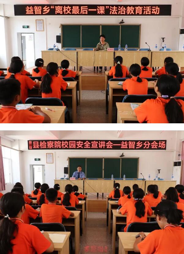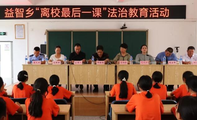 期间,在益智乡中心学校220余名学生“离校最后一课”法治教育活动上,工作组紧密结合自身参与的政审工作,以案释法,以案明鉴,用生动的案例阐述违法犯罪的后果,引导青少年学法懂法,争做守法好少年。同时,鼓励青少年在学习法律知识之余,积极向身边的亲人朋友宣传法律知识,做普法小使者。
