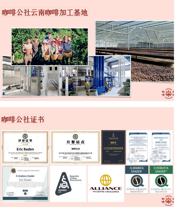 据悉,咖啡公社集团于2016年在上海成立,属外资企业,总部设在德国。咖啡公社集团注册的 P86+ 咖啡处理⽅法提⾼了云南省精品咖啡的标准。咖啡公社集团凭借 P86+ 咖啡赢得了 4 枚银牌和 5 枚铜牌,成为 2022 年⾦⾖杯⼤赛(全球最⼤的咖啡烘焙⼤赛)上获奖最多的中国烘焙商。