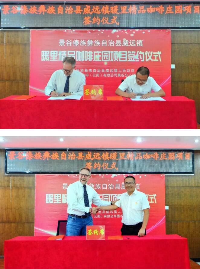 8月18日,景谷县威远镇人民政府与咖啡公社集团就暖里精品咖啡庄园项目举行签约仪式。县委书记杨建忠,县委副书记、县政府县长邓世武,县人大常委会副主任、威远镇党委书记杨丕发,咖啡公社集团董事长林德恩等出席签约仪式。县茶叶和特色生物产业发展中心、县投促局相关领导和威远镇相关班子成员、中心站所主要负责人参加签约仪式。