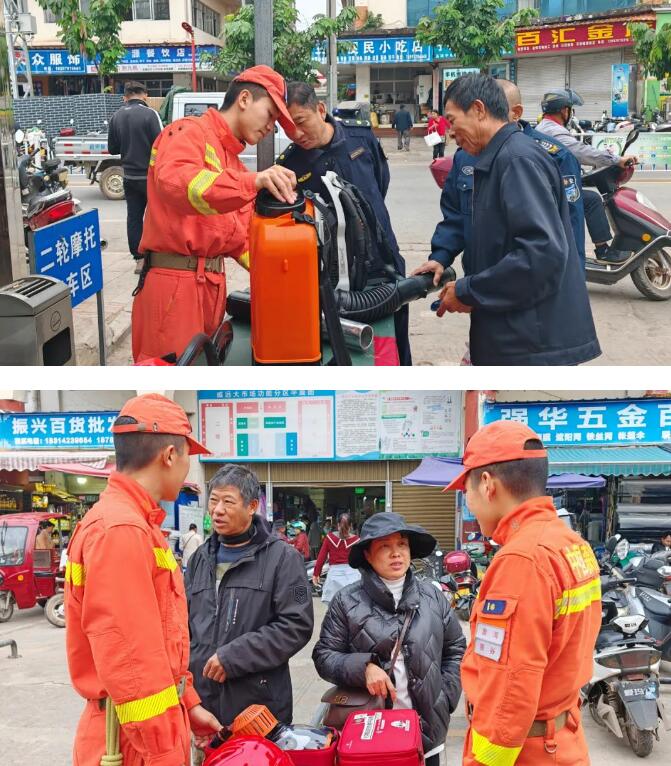 针对冬季防灾减灾形势,中队坚持把排查风险、消除隐患、防控火灾作为首要任务,努力实现由被动向主动防转变。“冬季外出劳作一定要谨慎用火,山林附近尽量不实施焚烧作业,减少火灾隐患······”活动现场,中队宣传人员通过发放消防安全宣传手册、面对面唠家常的方式围绕百姓生活常事向群众讲解了常见的森林火灾引发原因、野外用火等行为的危险性,并就生活中常见的电器火灾、火场逃生自救方法、发生火灾应如何正确拨打报警电话等内容进行普及。除此,现场还通过设置装备展示区、海报科普区、影音播放区等走进街道商户,消防员带着印有“警惕呵护万亩林,星火可毁千顷绿”字样的宣传伴手礼敲门入户送平安。