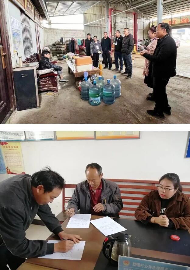入户走访转思想 通过调查取证,明确对永碧公路勐嘎村段28宗“两违”构建筑物进行限期拆除,镇党委、政府增派12人的群众工作组配合村“两委”和包村工作组开展思想动员工作,入户工作组通过持续逐户走访的方式,向群众告知整治范围、整改措施,宣传相关法律法规和政策要求,听取群众诉求,尽最大努力化解群众疑虑,转变群众观念,共完成经营主体、土地主体3轮以上入户工作,进一步压实工作责任,及时发放限期拆除告知书、部分业主主动签订限期拆除承诺书,通过大量群众工作,讲清违法后果,该区域大部份业主开始自行拆除违法建筑。