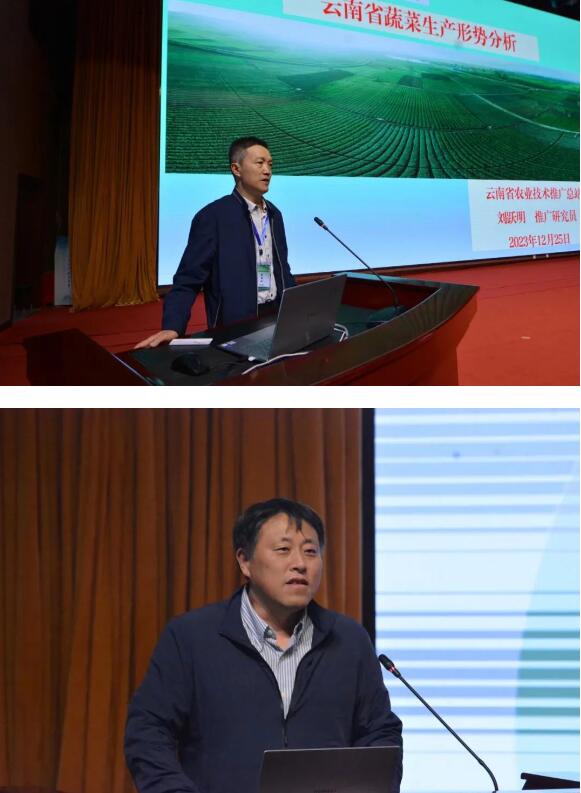 论坛上,云南省农业技术推广总站推广研究员刘跃明,上海市农业科学院园艺所所长、研究员朱为民,鼎宏集团云南区域市场总经理胡艳,云南省农科院园艺所副所长、研究员桂敏,云南省农业科学院农业经济与信息研究所研究员杜刚,云南省农业科学院热区生态农业研究所副研究员、云南思农蔬菜种业发展有限责任公司总经理杨长楷6位省内外蔬菜专家,分别从《云南省蔬菜生产形势分析》《推进设施蔬菜高质量发展》《滇西南绿色有机蔬菜产业高质量发展路径》《滇西南蔬菜产业与乡村振兴——景谷蔬菜产业发展》《景谷现代农业产业园——发展方向与工作举措》《云南热区蔬菜产业发展现状和新品种新技术示范推广方向》6个专题,围绕蔬菜产业发展趋势、云南冬春蔬菜发展优势、农产品深加工、蔬菜品牌打造等方面分享了各自的研究成果和经验,深入交流了云南蔬菜产业发展的新理念、新模式、新技术、新业态,共同探讨了推进云南蔬菜产业绿色高质量发展的新思路、新路径、新举措,为今后一段时期景谷蔬菜产业发展指明了方向。 此次论坛由云南省农业科学院、云南省蔬菜行业协会共同主办,景谷县委、县政府承办,云南省农业科学院园艺作物研究所协办。