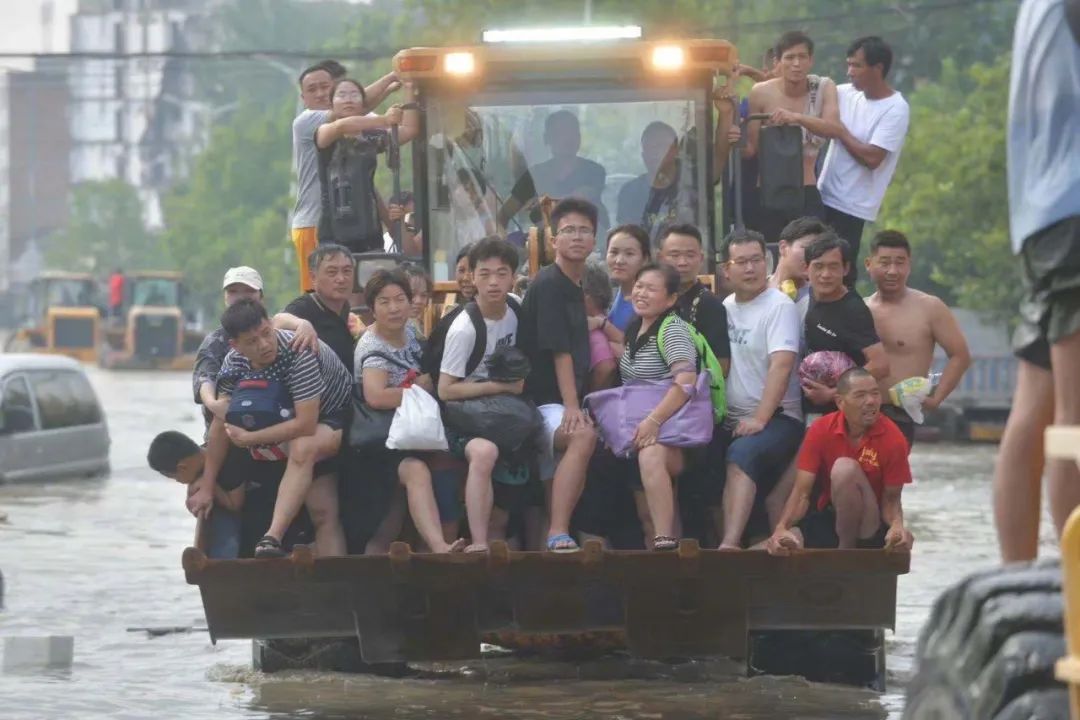 7月,河南遭遇极端暴雨 商场负一楼被淹 工作人员和热心市民泡在水里 用绳子将被困人员逐个拉出 还有一位铲车师傅 把自己的车子变成“诺亚方舟” 载着孕妇、孩子、老人、宠物…… 一次又一次 稳稳地驶向安全区域