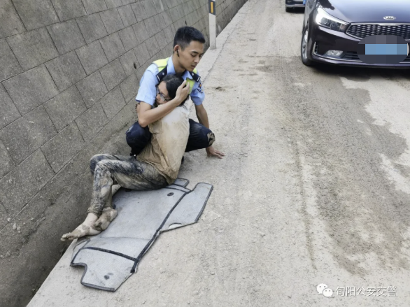 陕西安康 一名年轻警察蹲坐路边 将一位满身泥浆的女子 轻拥入怀、暖心安抚 人民警察 就是最放心的依靠