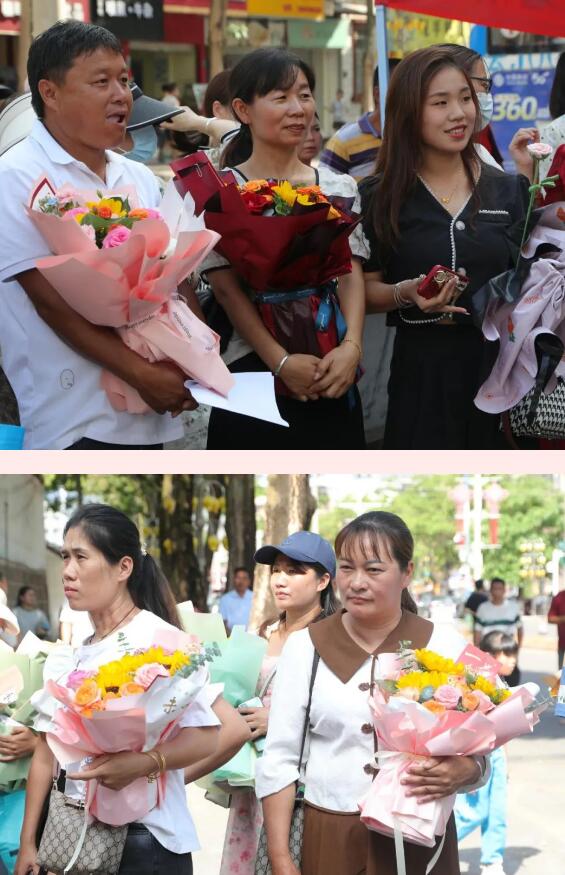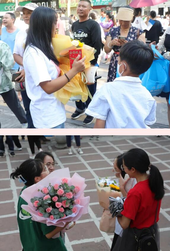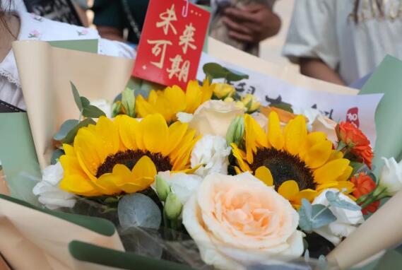 在县一中考点外,不少家长们手捧搭配着洋甘菊、香槟玫瑰象征“一举夺魁”的向日葵花束,用仪式感十足的方式迎接考生。“今天我是来接我姑娘的,她高考结束,希望她考上理想的大学,高中这三年太辛苦了,考试结束后,想带她出去外面(旅游)放松一下。”家长刘付萍说。