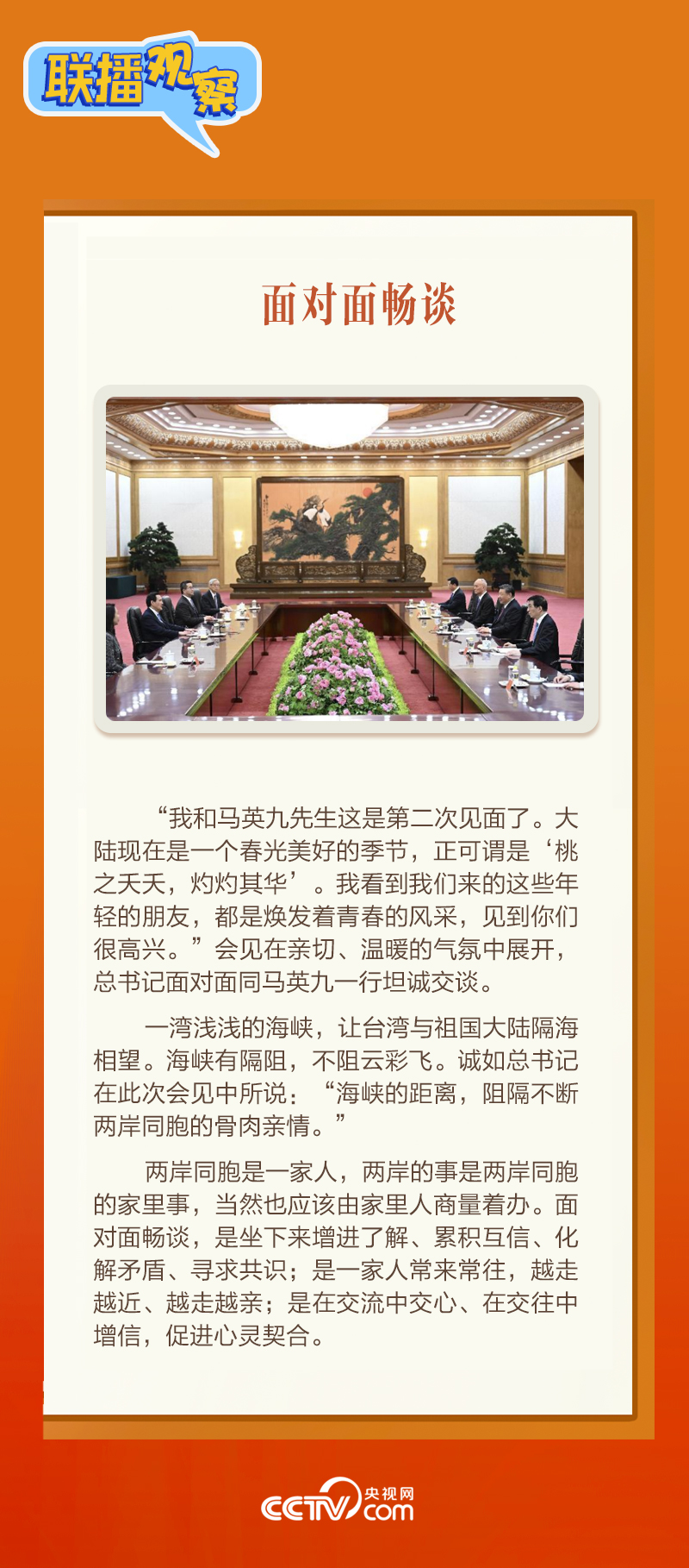 联播+4月10日下午,习近平总书记在北京人民大会堂会见马英九一行。东大厅巨幅座屏前,习近平总书记与马英九微笑握手。这是党的二十大后,总书记首次会见台湾同胞。 这场美好春光里的会见,有哪些特别的温暖瞬间?央视网《联播观察》带您了解。