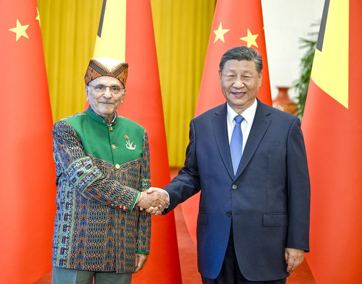 7月29日上午,国家主席习近平在北京人民大会堂同来华进行国事访问的东帝汶总统奥尔塔举行会谈。这是习近平同奥尔塔握手。新华社记者 李学仁 摄 新华社北京7月29日电(记者杨依军)7月29日上午,国家主席习近平在北京人民大会堂同来华进行国事访问的东帝汶总统奥尔塔举行会谈。 习近平指出,总统先生是东帝汶建国元勋和中国同东帝汶友好事业的奠基者,你的访问是东帝汶总统首次对中国进行国事访问,具有重要历史意义。中国同东帝汶传统友谊源远流长,中国最早承认东帝汶独立并同东帝汶建交。建交以来,两国始终真诚相待、守望相助,是不同政治制度、发展水平、历史文化国家相互尊重、和平共处、共同发展的典范。两周前,中国共产党二十届三中全会成功召开,中国将进一步全面深化改革,推进高质量发展和高水平对外开放,这将给全球经济发展和两国合作带来新动力、新契机。中方愿同东帝汶一道,推动两国全面战略伙伴关系不断迈上新台阶,更好造福两国人民。 习近平强调,中方愿同东帝汶一道,朝着“三个更高”的目标,引领双边关系长期稳定发展。一是坚定相互支持,打造更高水平双边关系。中方坚定支持东帝汶维护国家统一和社会稳定的努力,愿同东帝汶全面深化战略协作和发展合作,维护好两国主权和安全利益,朝着共建命运共同体的大方向迈进。二是坚持互利共赢,开展更高质量务实合作。围绕产业振兴、基础设施建设、粮食自给、民生改善等四大重点领域合作,以签署共建“一带一路”合作规划为契机,加强发展战略对接,分享水利建设、节水灌溉、防灾减灾等领域经验技术,实施好水稻栽培等农业合作,推进渔业、减贫等合作,助力东帝汶经济自主和多元化发展。三是共促“全球南方”事业,开展更高层次多边协作,弘扬和平共处五项原则精神,加强在联合国、世界贸易组织等多边平台协调配合,共同倡导平等有序的世界多极化、普惠包容的经济全球化,推动构建人类命运共同体。中方也愿在中国-葡语国家经贸合作论坛、联合国粮农组织等框架内同东帝汶开展更多双边、三方合作。 奥尔塔表示,自1976年以来我多次访华,亲眼见证了中国发生的翻天覆地的变化。在习近平主席领导下,中国消除了绝对贫困,堪称人类奇迹。面对深刻演变的世界局势,中国坚定维护多边主义,提出共建“一带一路”和一系列重要全球倡议,并促成沙特伊朗以及巴勒斯坦各派别实现和解,为地区和世界和平与发展事业作出重要贡献,展现了中国作为一个和平、负责任的全球大国作用和影响力。感谢中国长期以来为东帝汶经济社会发展以及应对新冠疫情提供的宝贵支持。东帝汶希望进一步巩固发展同中国的全面战略伙伴关系,加强粮食安全、基础设施建设等领域合作,助力东帝汶实现国家自主发展。东帝汶坚定恪守一个中国原则,认为台湾是中国领土不可分割的一部分,反对“台湾独立”,反对外部势力干涉,支持中国维护国家主权和领土完整的一切努力。南海问题应该由当事国通过谈判自主解决,东帝汶愿同中国等地区各国一道,共同维护南海和平稳定。我高度赞赏习近平主席提出构建人类命运共同体伟大理念,这体现了古老东方文明智慧,愿同中方密切在多边框架下沟通协作。 会谈后,两国元首共同见证签署共建“一带一路”合作规划和农业、绿色发展、数字经济、航空运输等领域多项双边合作文件。 双方发表《中华人民共和国和东帝汶民主共和国关于深化全面战略伙伴关系的联合声明》。