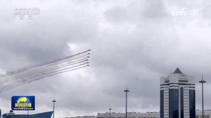央视网消息(新闻联播):构建人类命运共同体是习近平外交思想的核心理念,是新时代中国特色大国外交追求的崇高目标。今年以来,习近平主席以大国领袖的全球视野、天下情怀和时代担当,积极开展元首外交,与世界各国携手同行现代化之路,开创人类社会更加美好的未来。系列报道《奋力谱写中国式现代化新篇章——习近平总书记今年以来治国理政纪实》今天(8月6日)播出《引领中国特色大国外交 推动构建人类命运共同体》。 当地时间7月2日,习近平主席飞抵阿斯塔纳,开启中亚之行。哈萨克斯坦总统托卡耶夫在机场举行盛大迎宾仪式。第二天上午,哈萨克斯坦首次在总统府欢迎仪式上安排战机表演,以最高礼仪欢迎习主席到访。