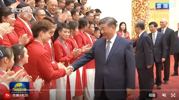 中共中央总书记、国家主席、中央军委主席习近平20日下午在人民大会堂接见第33届夏季奥林匹克运动会中国体育代表团全体成员。他强调,在巴黎奥运会上,你们团结一心、顽强拼搏,奋勇争先、不负使命,取得我国参加夏季奥运会境外参赛历史最好成绩,实现了比赛成绩和精神文明双丰收,为祖国和人民赢得了荣誉。他代表党中央和国务院欢迎大家凯旋,向大家致以热烈祝贺和诚挚慰问,并向全国体育战线的同志们表示亲切问候。 中共中央政治局常委赵乐际、王沪宁、蔡奇、李希,国家副主席韩正参加接见。 人民大会堂金色大厅洋溢着喜庆热烈的气氛。下午3时20分许,习近平等党和国家领导人来到代表团成员中间,全场响起长时间热烈掌声。习近平等同大家亲切握手,并合影留念。 在热烈的掌声中,习近平发表重要讲话。他表示,中国体育代表团的优异成绩,既是我国体育事业发展进步的集中体现,也是中国式现代化建设成就的一个缩影,充分彰显了新时代中国力量。国运兴则体育兴、国家强则体育强。我国能够跻身世界体育大国、奥运强国之列,根本在于综合国力不断增强,为体育竞技训练提供了先进科技支撑和坚实物质保障,也为各领域体育人才脱颖而出创造了良好成长环境和广泛群众基础。新时代新征程,以中国式现代化全面推进强国建设、民族复兴伟业,必将为我国体育事业发展提供更好条件、注入强劲动力。我们要继续大力发展以人民为中心的体育事业,推动全民健身和全民健康深度融合,向着建设体育强国、健康中国的目标不断迈进。 习近平指出,中国体育代表团的优异成绩,将中华体育精神和奥林匹克精神发扬光大,让中华民族精神和时代精神交相辉映,生动诠释了新时代中国精神。赛场上,大家牢记党和人民重托,“国家荣誉永远超过个人”、“我的这块金牌献给伟大的祖国”等誓言掷地有声,展现了祖国至上、为国争光的赤子情怀,展现了顽强拼搏、自强不息的必胜信念,展现了团结协作、并肩作战的宝贵品质,展现了中国青年一代自信乐观、热情友好的阳光气质。你们让全世界看到了中华优秀传统文化的深厚积淀,看到了中国开放包容、昂扬进取的时代风貌,看到了中国人民的志气、锐气和底气。祖国和人民为你们骄傲,为你们点赞。 习近平强调,中国体育代表团坚持拿道德的金牌、风格的金牌、干净的金牌,弘扬了体育道德风尚,赢得了广泛尊重认可,充分展现了新时代中国形象。赛场上,大家遵守规则、尊重对手、尊重裁判、尊重观众,保持良好的赛风赛纪和文明礼仪,胜不骄、败不馁,在竞技上、道德上、风格上都拿到了金牌。 习近平指出,新的奥运备战周期已经开始。希望大家戒骄戒躁、再接再厉,提高训练和比赛水平,扬长补短,加快人才培养,高质量做好备战工作。竞技体育和群众体育相辅相成,希望大家进一步提升竞技体育综合实力,带动全民健身、青少年体育蓬勃开展,为建设体育强国再立新功。 王毅、刘国中、李书磊、李鸿忠、何卫东、陈武,中央和国家机关有关部门负责同志、各省区市和新疆生产建设兵团体育部门负责同志参加接见。