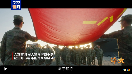经中央军委批准,由中央军委政治工作部、中央网信办、中央广播电视总台联合制作思想解读类融媒体片《淬火》。该片聚焦打好实现建军一百年奋斗目标攻坚战,进行式呈现全军官兵在习近平强军思想引领下,贯彻落实新时代政治建军方略,为强军事业艰苦奋斗、顽强奋斗、不懈奋斗的昂扬风貌。 △第一集《军旗下的誓言》 △第二集《向战为战练精兵》 △第三集《荣光照耀新征程》 △第四集《步调一致向前进》 △第五集《中流击水勇担当》 △第六集《同心奋进创一流》 |