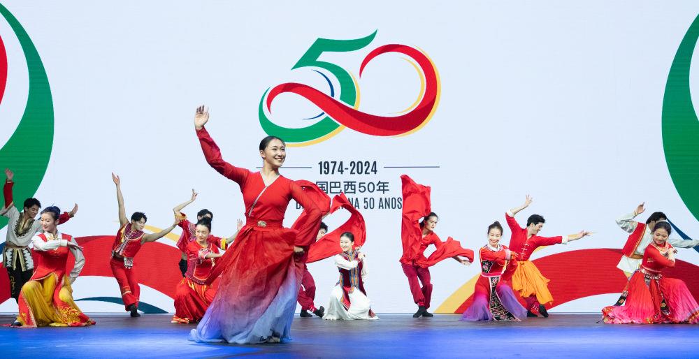 △当地时间2024年8月15日,在巴西首都巴西利亚,来自北京舞蹈学院民族舞团的演员在庆祝中巴建交50周年招待会上表演。 8月15日,在同巴西总统卢拉就中巴建交50周年互致贺电时,习近平主席指出:“中国和巴西同为发展中大国和重要新兴市场国家,是志同道合的好朋友、携手前行的好伙伴。” 巴西是第一个同中国建立战略伙伴关系的发展中国家,也是第一个同中国建立全面战略伙伴关系的拉美国家。习近平主席2014年、2019年两次成功访问巴西。2023年4月,卢拉总统履职不久即率庞大代表团第三次对中国进行国事访问。频密的元首外交,不断夯实两国政治互信。