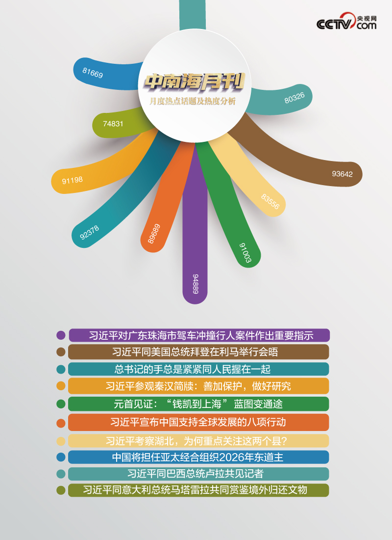 天天学习 有一定之略,然后有一定之功。 时间的长镜头,记录下习近平总书记繁忙的身影—— 离京考察,三天三地,在行程紧凑、内容务实的调研中思索中国式现代化前行方向;赴拉美“走亲访友”,11天时间密集出席近40场双多边活动,达成60多项合作文件;对社会工作、供销合作社工作等作出重要指示;同各国各界人士保持友好联系…… 在日复一日的勤勉工作中,习近平总书记始终心怀“国之大者”,践行为国为民的承诺。央视网《中南海月刊》运用智能大数据,解码总书记务实又忙碌的11月。