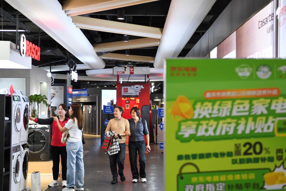 △2024年10月17日,重庆市江北区,消费者选购电器。 从其他方面看,还有很多可圈可点的亮色,支撑经济运行筑底企稳。 前三季度,铁路、民航客运量同比分别增长13.8%、19.1%,我国跨区域人员流动量490.9亿人次,同比增长5.4%;全国规模以上文化及相关产业企业实现营业收入同比增长5.9%,文化新业态特征较为明显的16个行业小类实现营业收入同比增长10%;根据国内旅游抽样调查统计结果,国内出游人次同比增长15.3%,国内游客出游总花费同比增长17.9%。 这些细分领域的增长,单独来看可能并不显著,但累积起来却可以对整体增长产生积极影响,使中国经济稳中向好有支撑、有基础、有底气。 “进”的动能更加强劲 评判经济好不好,除了看经济增速,更要看发展动力是否强劲、经济结构是否合理。当前,我国经济正处在结构调整、转型升级的关键期,必须坚定不移走高质量发展之路。 推动高质量发展,关键是发展新质生产力。